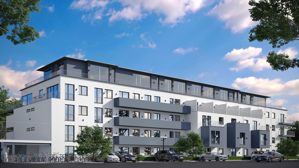 Auf dem großzügigen Grundstück ist ein attraktives Neubauprojekt mit 45 barrierefreien Eigentumswohnungen entstanden und einer Gewerbeeinheit. Die durchdachte Architektur kombiniert zeitlose Moderne mit nachhaltigen Elementen und schafft so ein Wohnensemble, das auch langfristig begeistert.