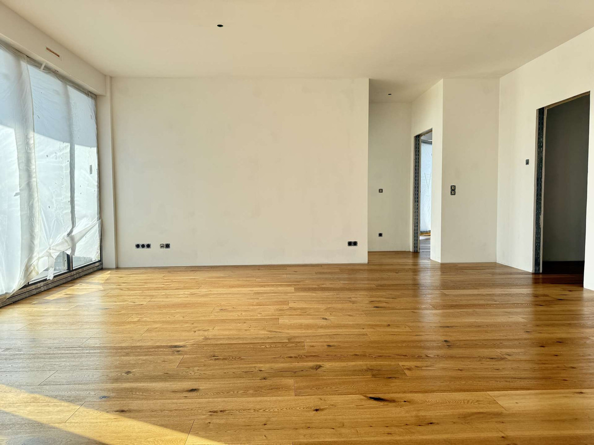 Sie erreichen Ihre neue Traumwohnung ebenerdig mit einem Lift der Schweizer Firma Schindler. Bereits beim Betreten entsteht eine wohlige Atmosphäre durch lichtdurchflutete Räume mit bodentiefen Fenstern und einem hochwertigen Holzboden.