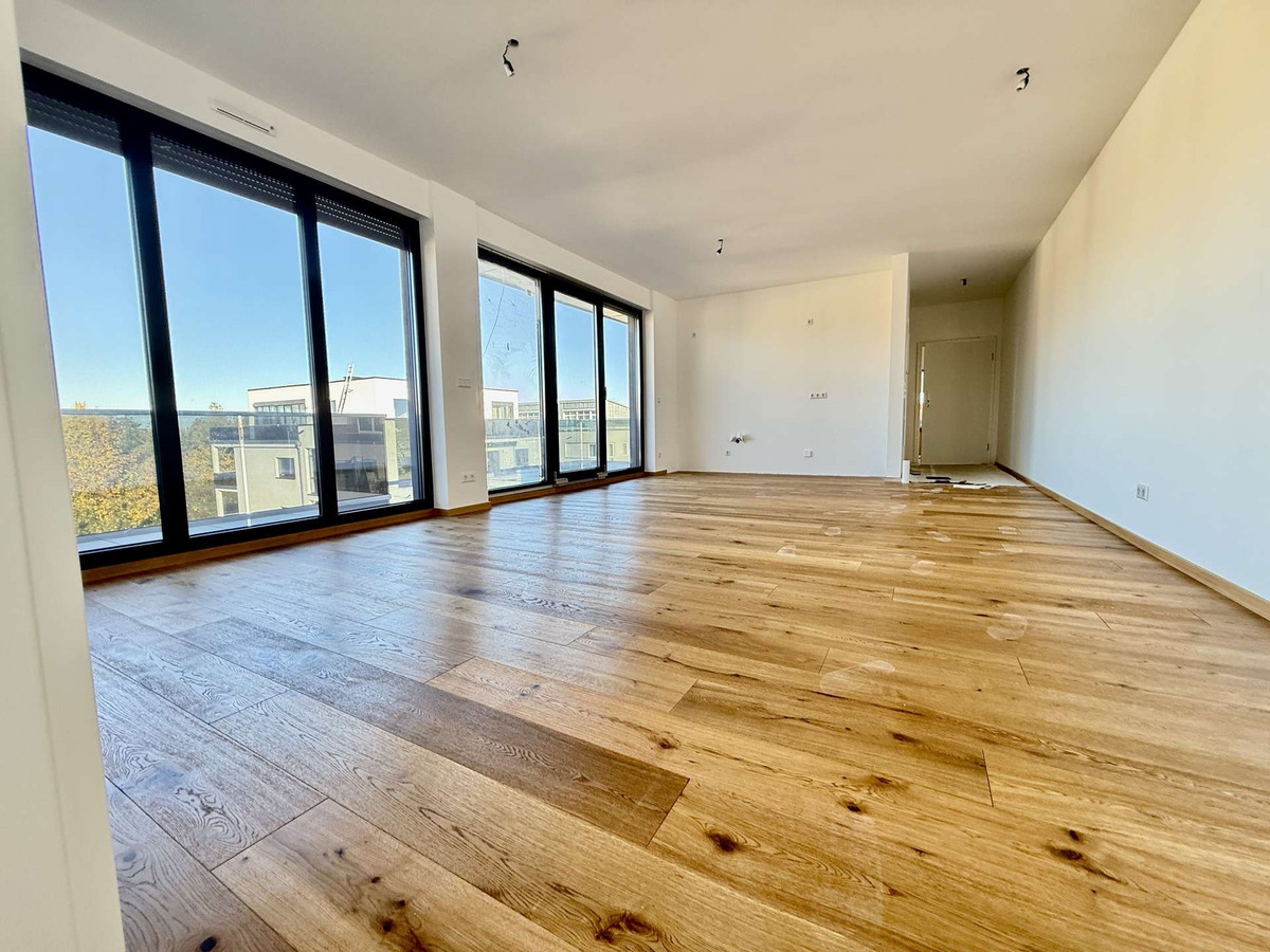 Sie erreichen Ihre neue Traumwohnung ebenerdig mit einem Lift der Schweizer Firma Schindler. Bereits beim Betreten entsteht eine wohlige Atmosphäre durch lichtdurchflutete Räume mit bodentiefen Fenstern und einem hochwertigen Holzboden.