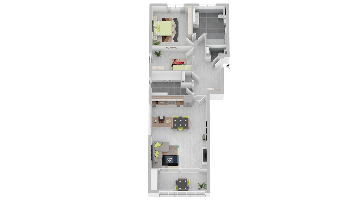 Das neue Wohnprojekt umfasst ein 9-Parteienhaus in moderner westfälischer Architektur. Es bietet insgesamt neun Wohnungen, darunter drei im Erdgeschoss, drei im Obergeschoss sowie eine exklusive Penthousewohnung und zwei Apartments im Dachgeschoss.