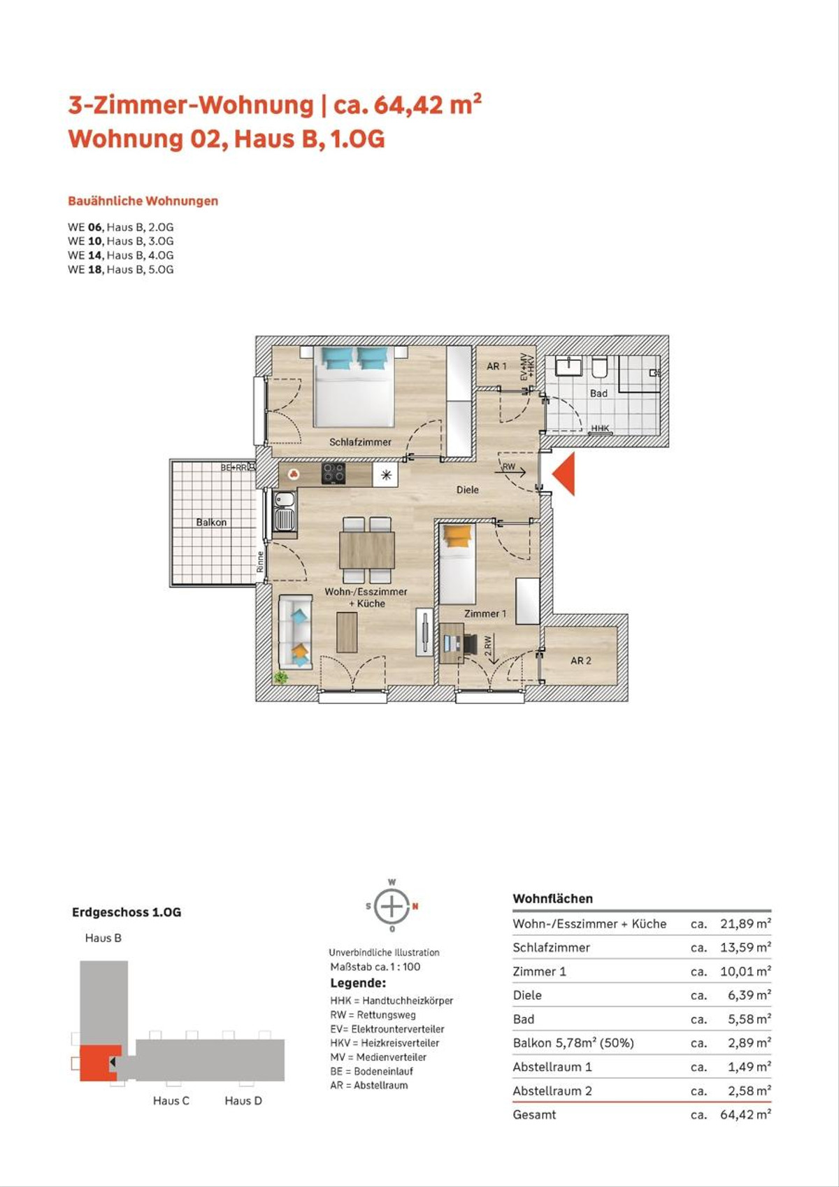 Alle Wohnungen bieten attraktive Details wie Echtholzparkett, elektrische Rollläden und bodenebene Duschen. Ein praktischer Aufzug sowie ein abgeschlossener Fahrradraum, für bis zu 92 Fahrräder, runden das Angebot ab.