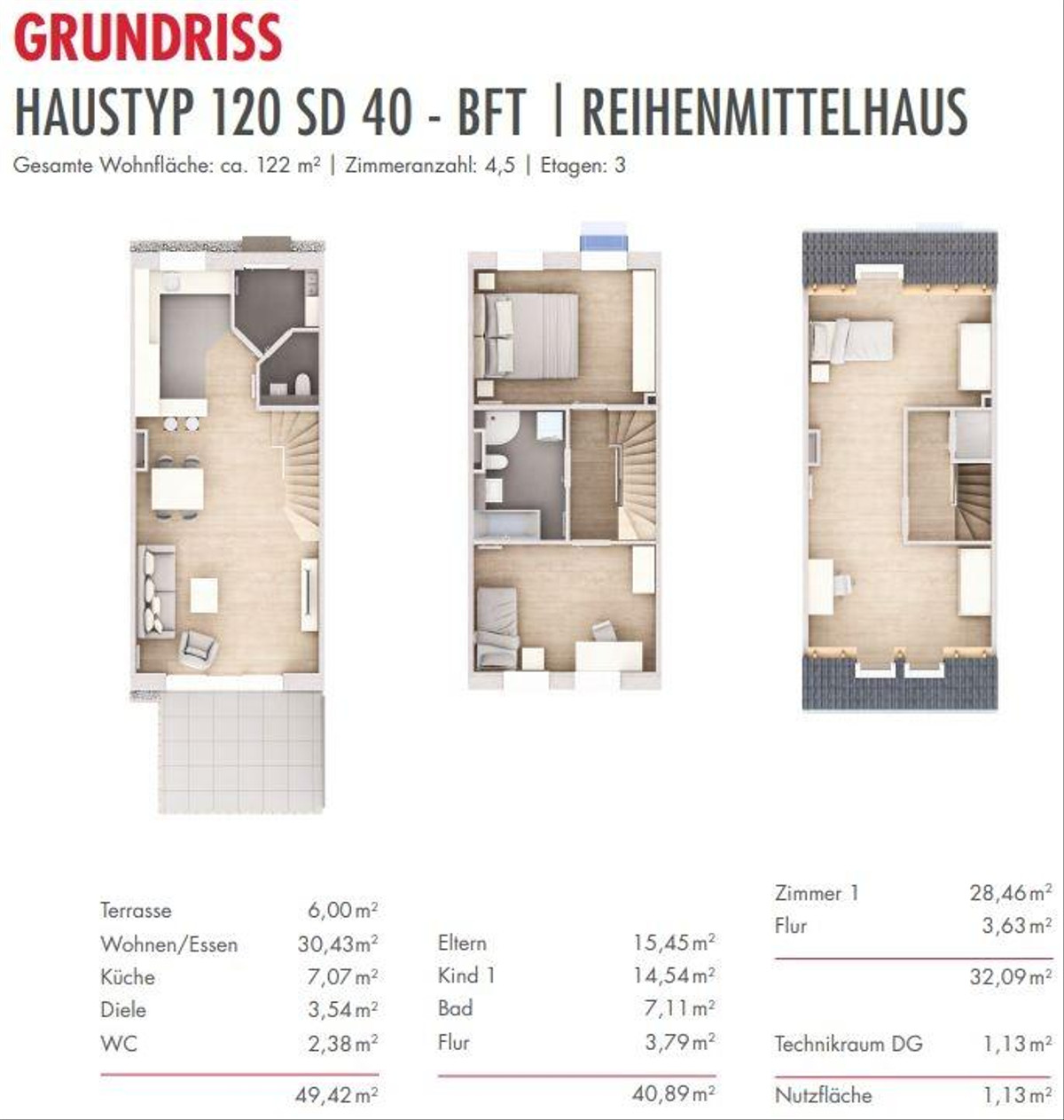 Die durchdachten Grundrisse erstrecken sich über drei Etagen und schaffen großzügige, lichtdurchflutete Wohnräume. Eine einladende Terrasse und ein eigener Gartenbereich bieten zusätzlichen Raum für Entspannung und Familienleben.